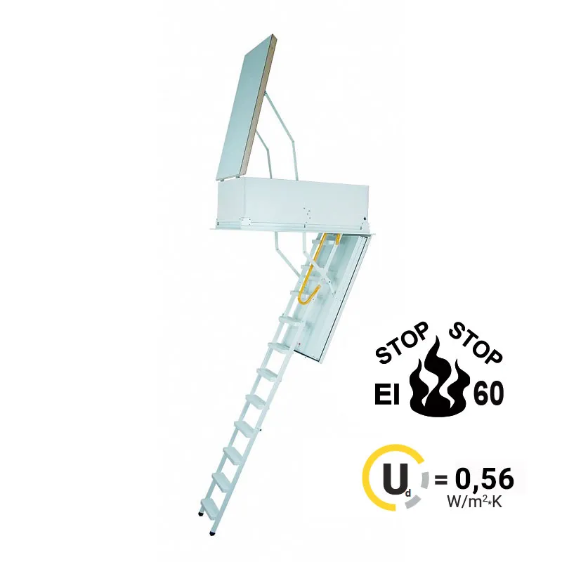 Лестница складная трехсекционная. Модель ALU PROFI идеальна для условий, когда чердак плохо утеплен и требует дополнительной теплоизоляции. Отличительной чертой лестницы ALUPROFI является легкая и чрезвычайно прочная лестница из алюминия высочайшего качества. Лестницы имеют нескользящие ножки, которые идеально прилегают к земле, предотвращают появление царапин на поверхности пола и придают лестнице эстетичный вид после ее резки.