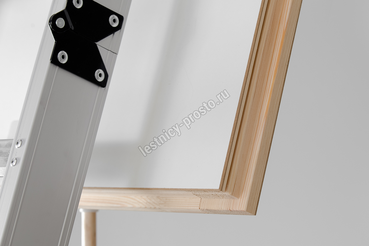 Складная 3-х секционная чердачная лестница. Рабочая поверхность полностью выполнена из алюминия. Термоизоляционная крышка типа "сэндвич" имеет усиленную теплозащиту, облицована с двух сторон ДВП белого цвета.