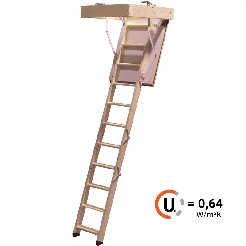 Складная чердачная лестница LWL имеет повышенные теплоизоляционные параметры и высокий класс герметичности. Утеплённая крышка люка белого цвета. Лестница оборудована специальным механизмом LXM-3 и крючком на нижней ступени марша для стержня, которые в комплексе обеспечивают лёгкость и плавность открывания и закрывания лестницы. Снабжена дополнительным поручнем для безопасного подъёма.