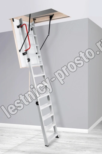 Лестница складная трехсекционная. Модель ALU PROFI идеальна для условий, когда чердак плохо утеплен и требует дополнительной теплоизоляции. Отличительной чертой лестницы ALUPROFI является легкая и чрезвычайно прочная лестница из алюминия высочайшего качества. Лестницы имеют нескользящие ножки, которые идеально прилегают к земле, предотвращают появление царапин на поверхности пола и придают лестнице эстетичный вид после ее резки.