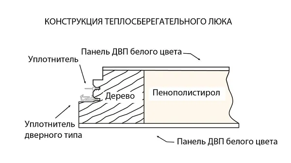 – Термоизоляционная крышка типа "сэндвич" имеет усиленную теплозащиту, облицована с двух сторон ДВП белого цвета.