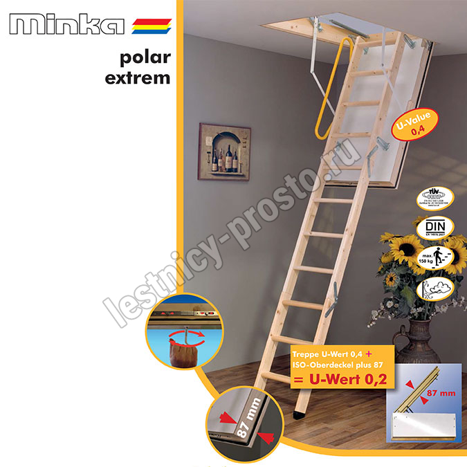 | Чердачная складная лестница MINKA POLAR EXTREM 130×70 см, h-280 см |