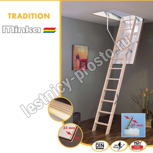 Возможна установка лестницы в разных по высоте помещениях, в пределах от 220 до 280 см.