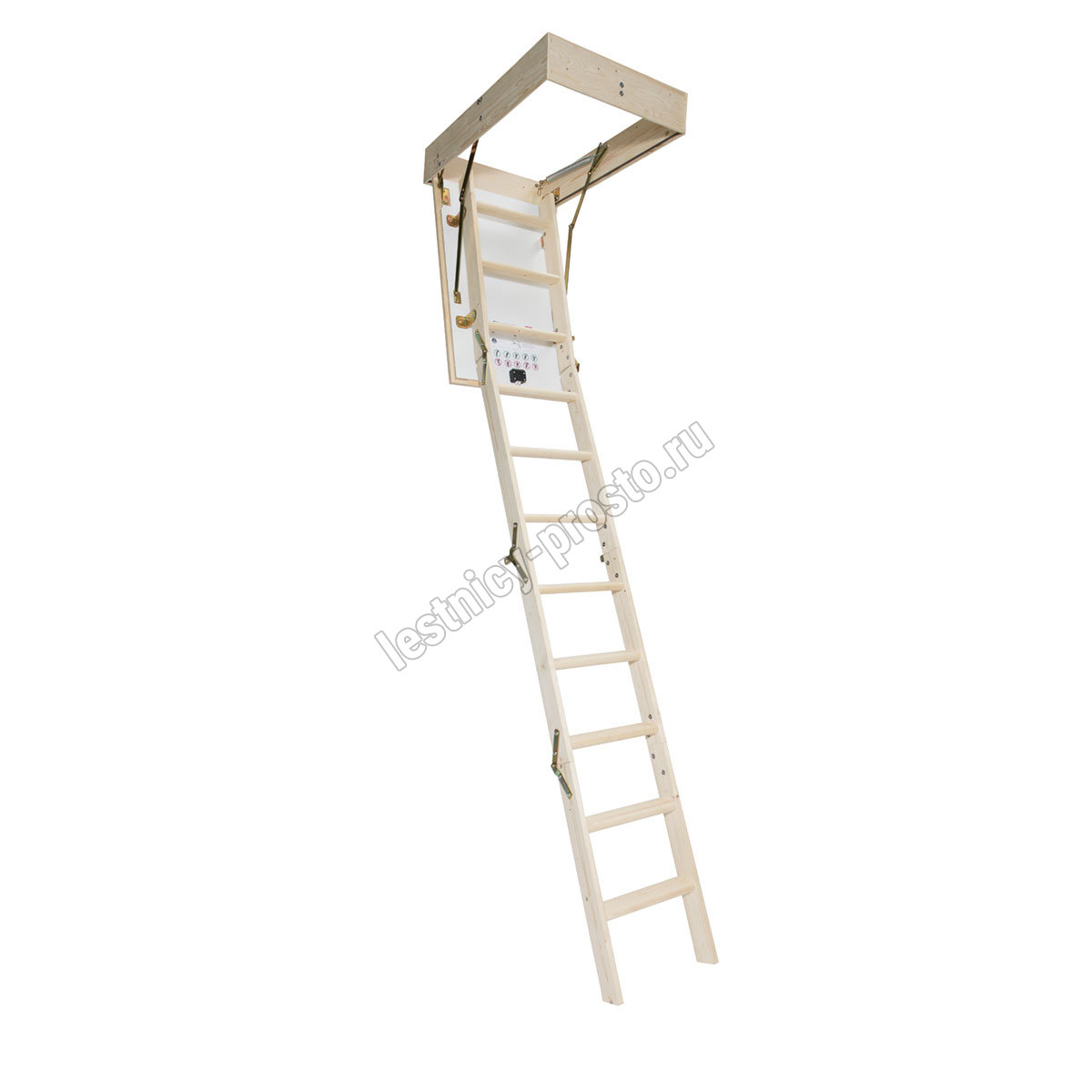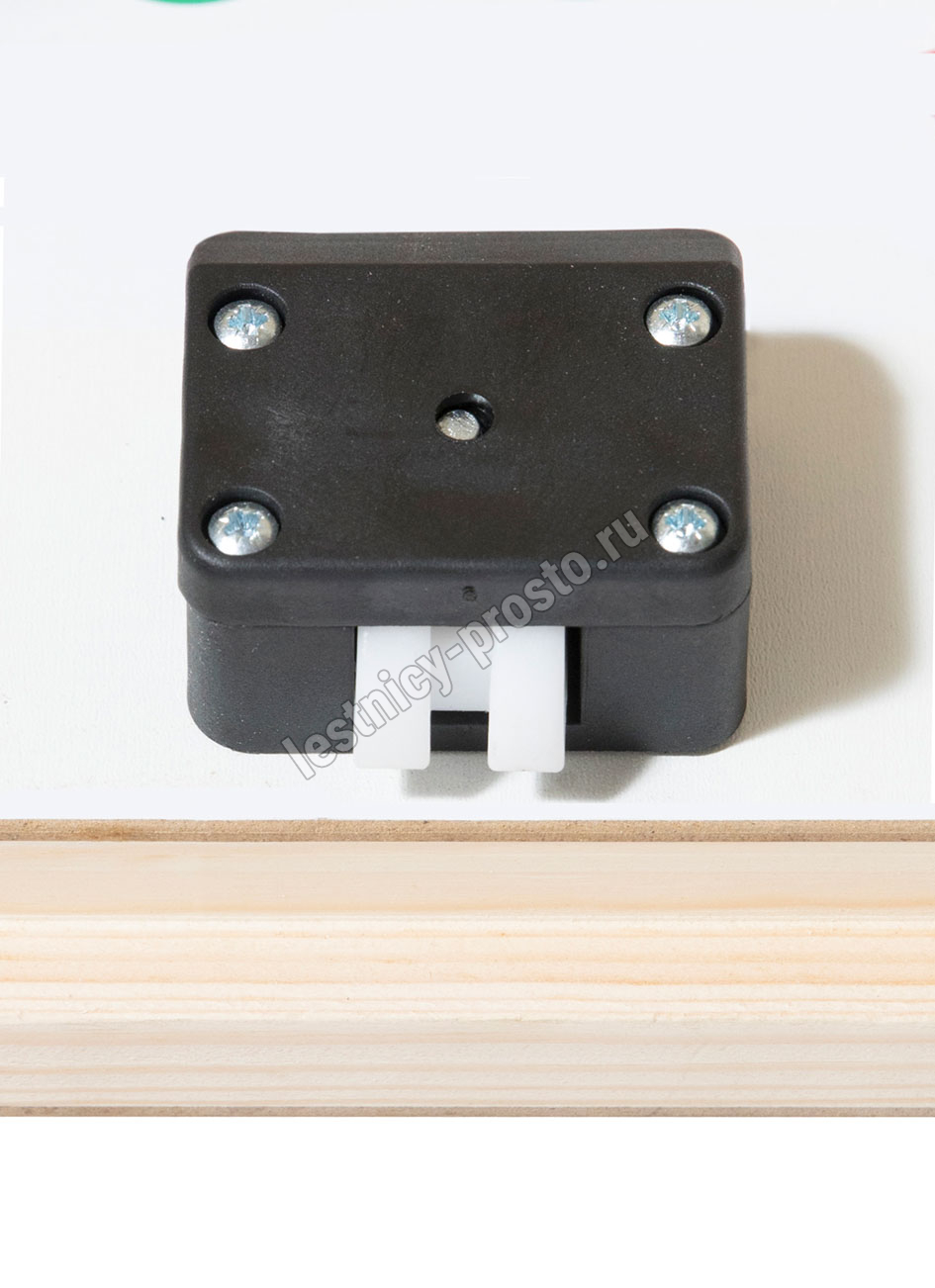 На ступенях лестницы антискользящие насечки. Люк с двух сторон облицован ДСП белого цвета. Размер короба: 900 × 576 мм
