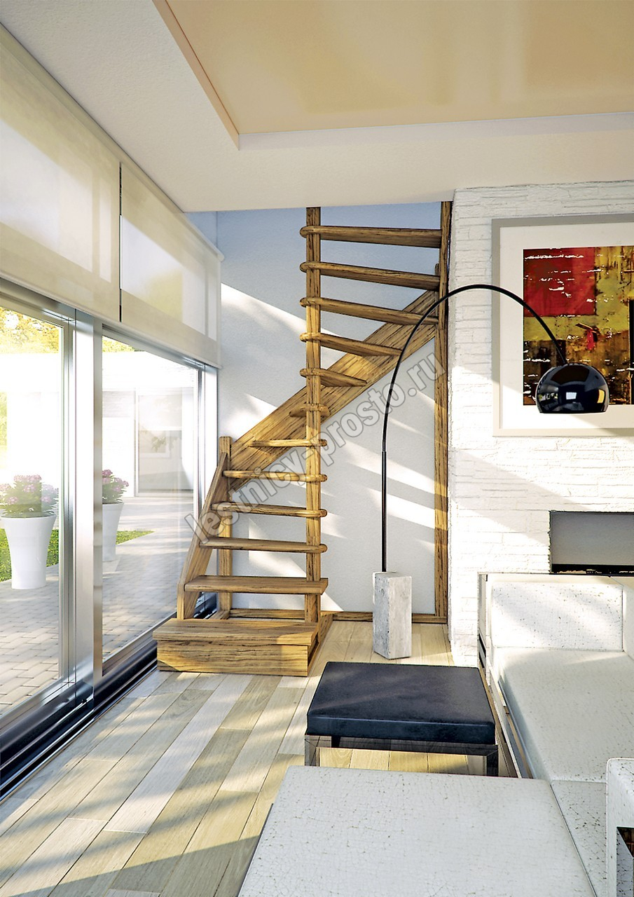 Деревянная межэтажная лестница ЛЕС-01 2720-2920 проем 1630-1120, Лиственница