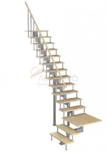 Универсальная лестница, имеющая в основе своей конструкции наклонную опорную балку. Легко впишется в любой интерьер, даже на неровном полу. Место под площадкой можно закрыть и использовать для хранения различных предметов. Монтаж осуществляется силами двух человек на объекте по указаниям, приведенным в паспорте на лестницу.