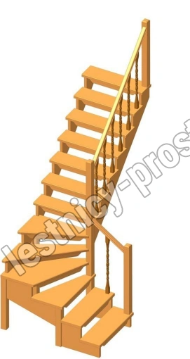 Деревянная межэтажная лестница ЛЕС-09 2690 проем 2405-900, Сосна