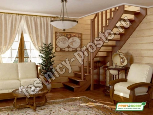 Ступени и поручень лестницы изготовлены из бука, остальные элементы из сосны.