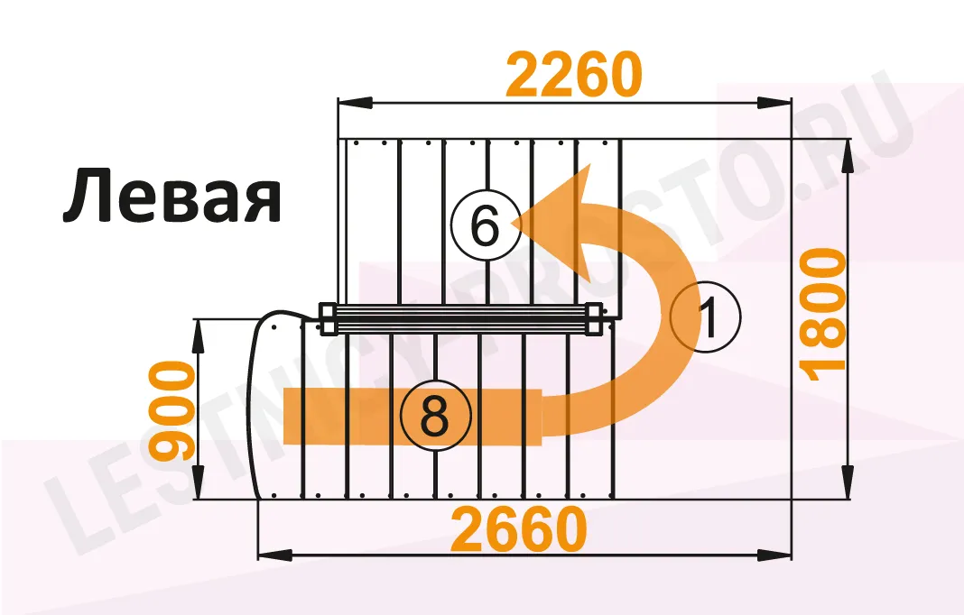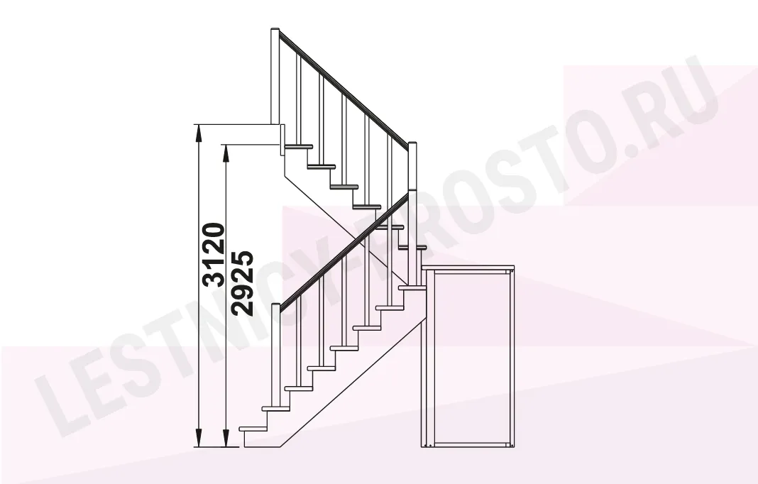 Схема лестницы К-004М/2 с поворотом налево