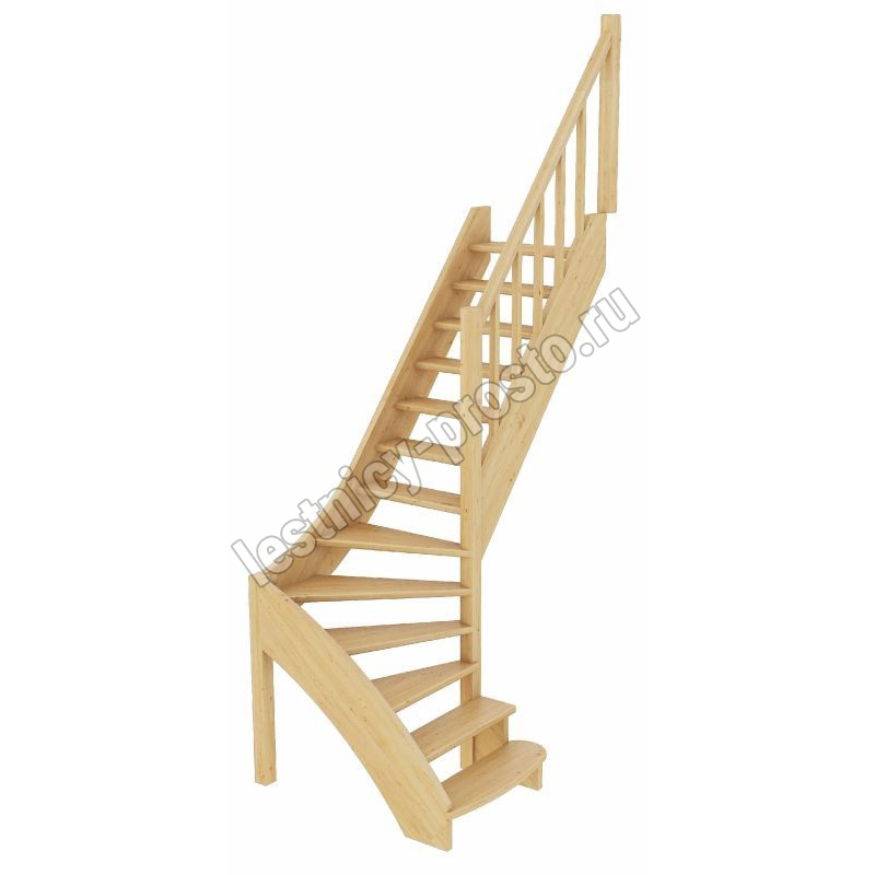 Базовый комплект включает в себя деревянные элементы лестницы и ограждения ;без какого-либо покрытия.