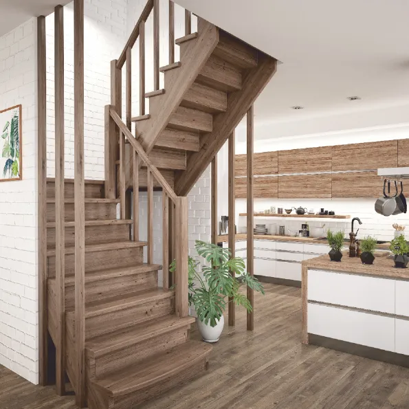 Базовый комплект включает в себя деревянные элементы лестницы и ограждения без какого-либо покрытия.