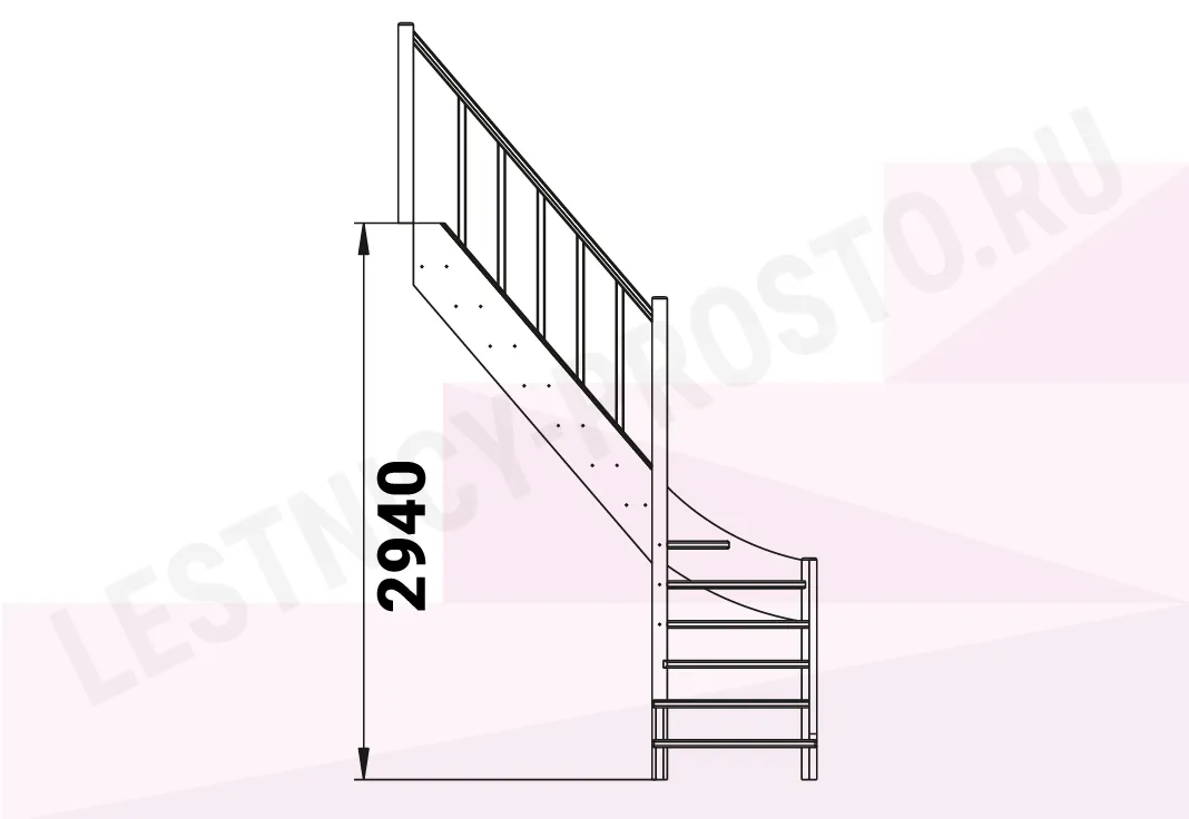 Базовый комплект включает в себя деревянные элементы лестницы с подступёнками и ограждения без какого-либо покрытия.