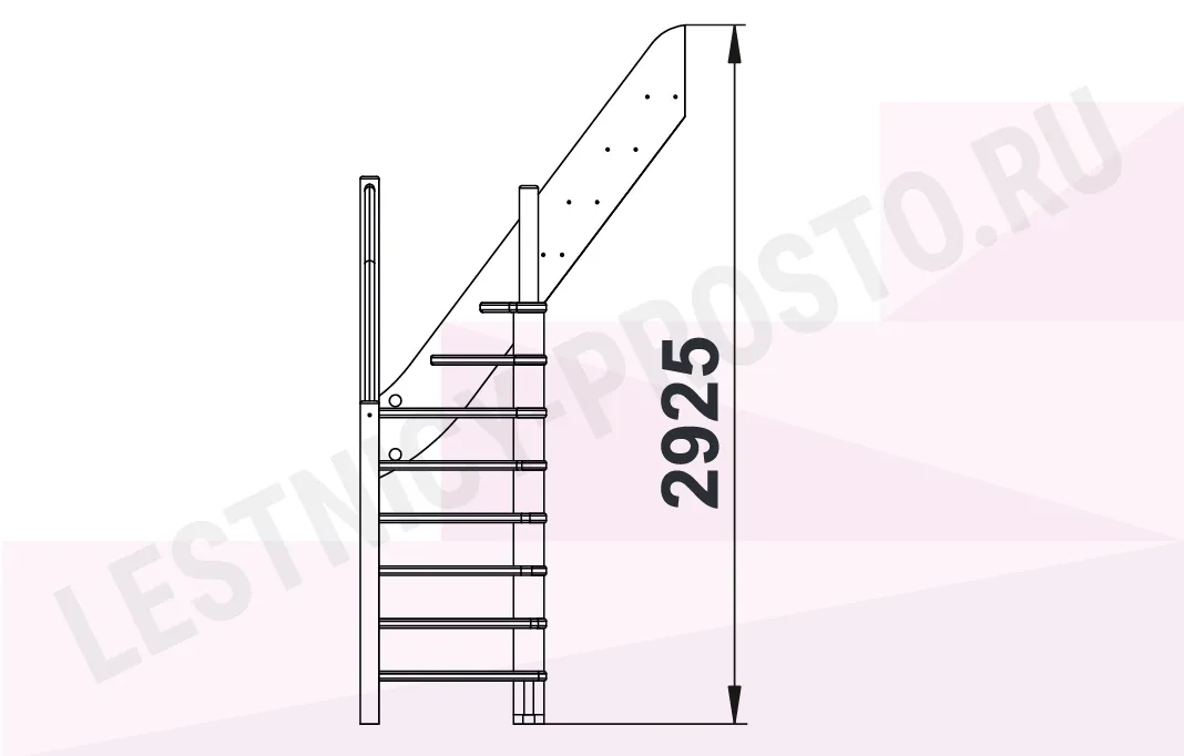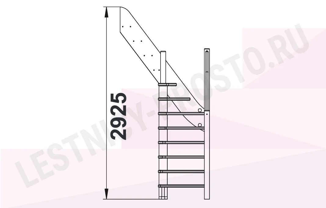 Схема лестницы ЛС-91М+1 с поворотом налево