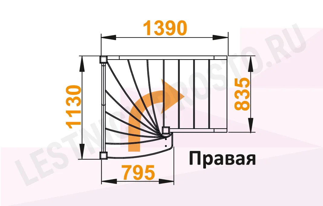 Схема лестницы ЛС-91М + 1 с поворотом направо