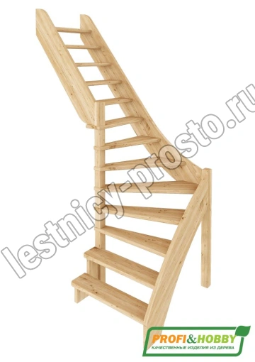 Базовый комплект включает в себя деревянные элементы лестницы без какого-либо покрытия.