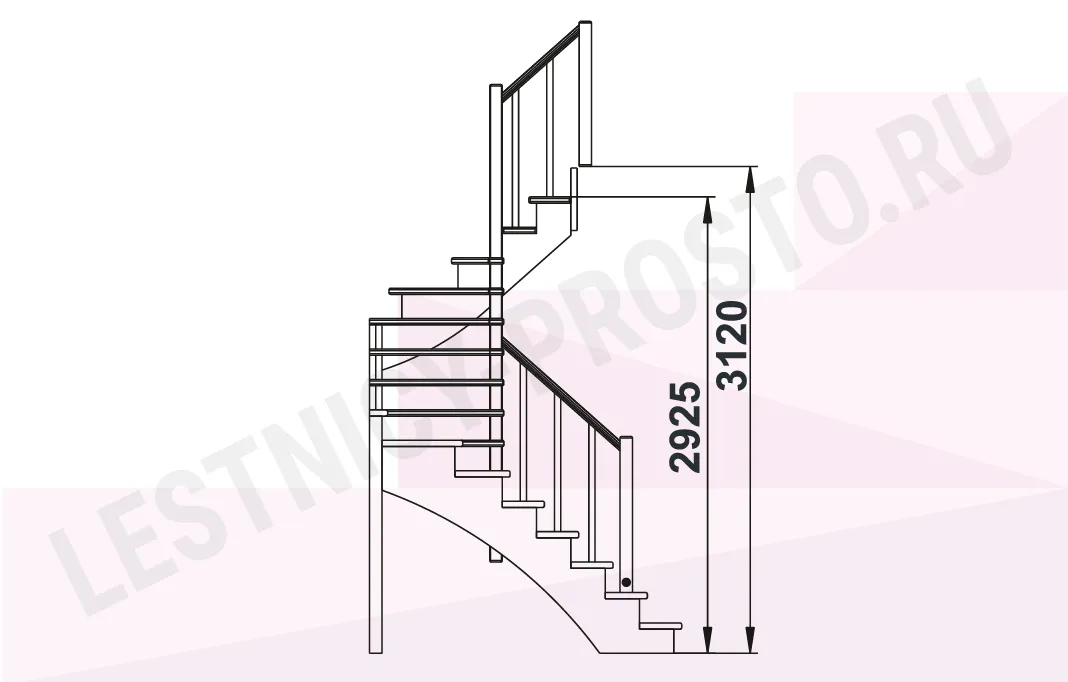 Схема лестницы К-003М/3 с поворотом налево