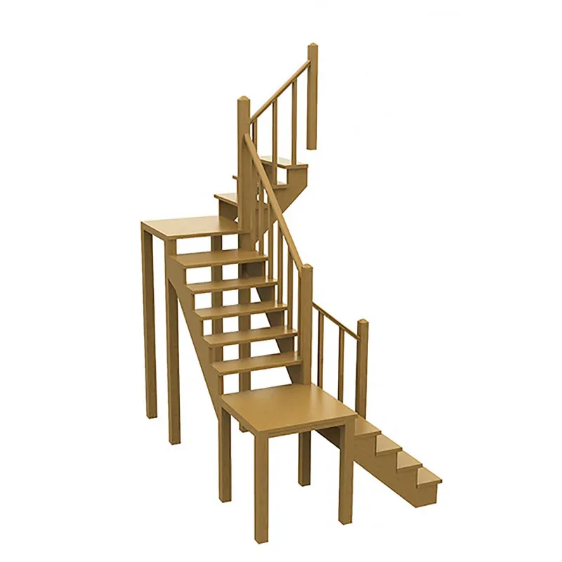 Ступени и поручень лестницы выполнены из ясеня, остальные элементы из сосны. Возможно изготовление данной модели полностью из ясеня.