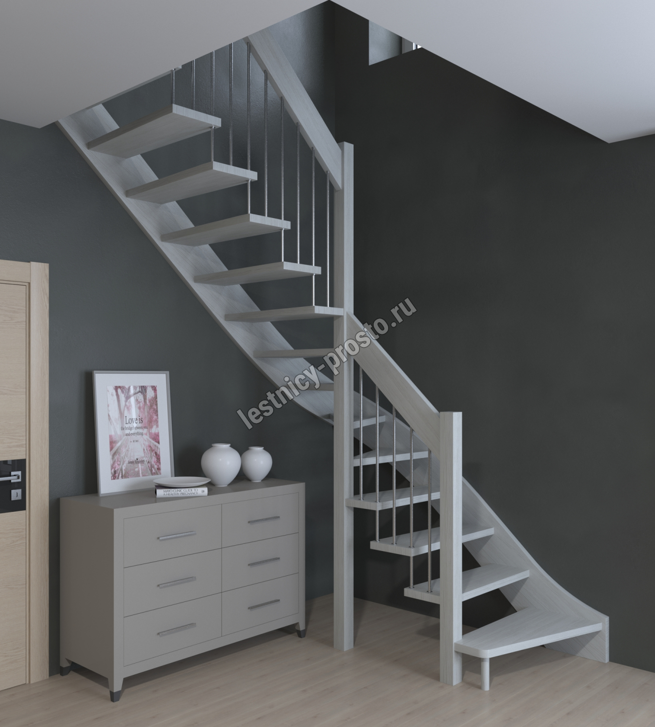 Лестница Prosto Console г-образная забежная дуб, h247.5 см (10 ступеней)
