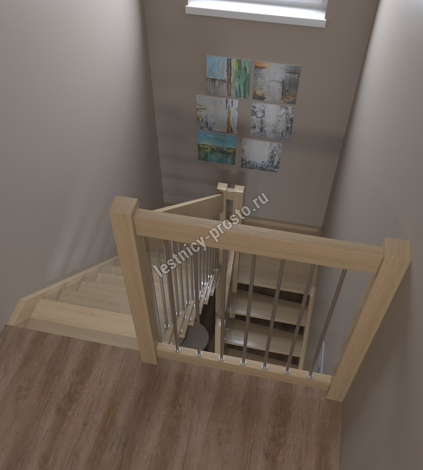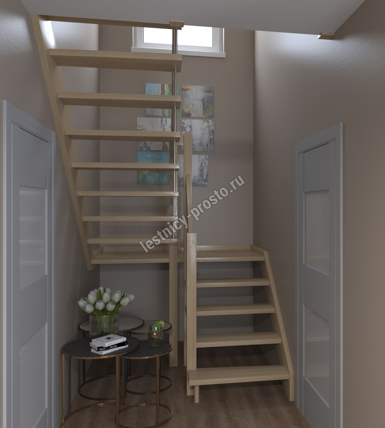 Лестница Prosto Console п-образная забежная, ясень h292.5 см (12 ступеней)