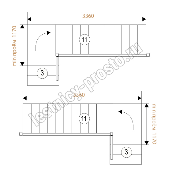 Форма лестницы Г-образная