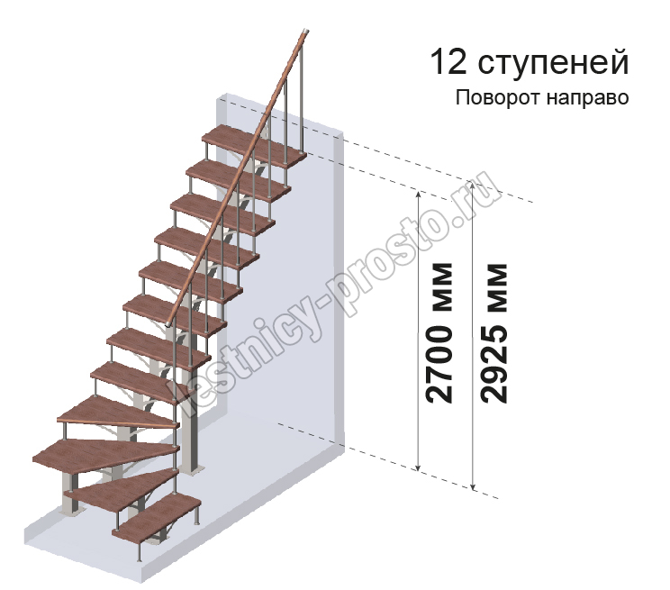Комплект для Г-образной лестницы MONO h292.5 из 12 ступеней.
