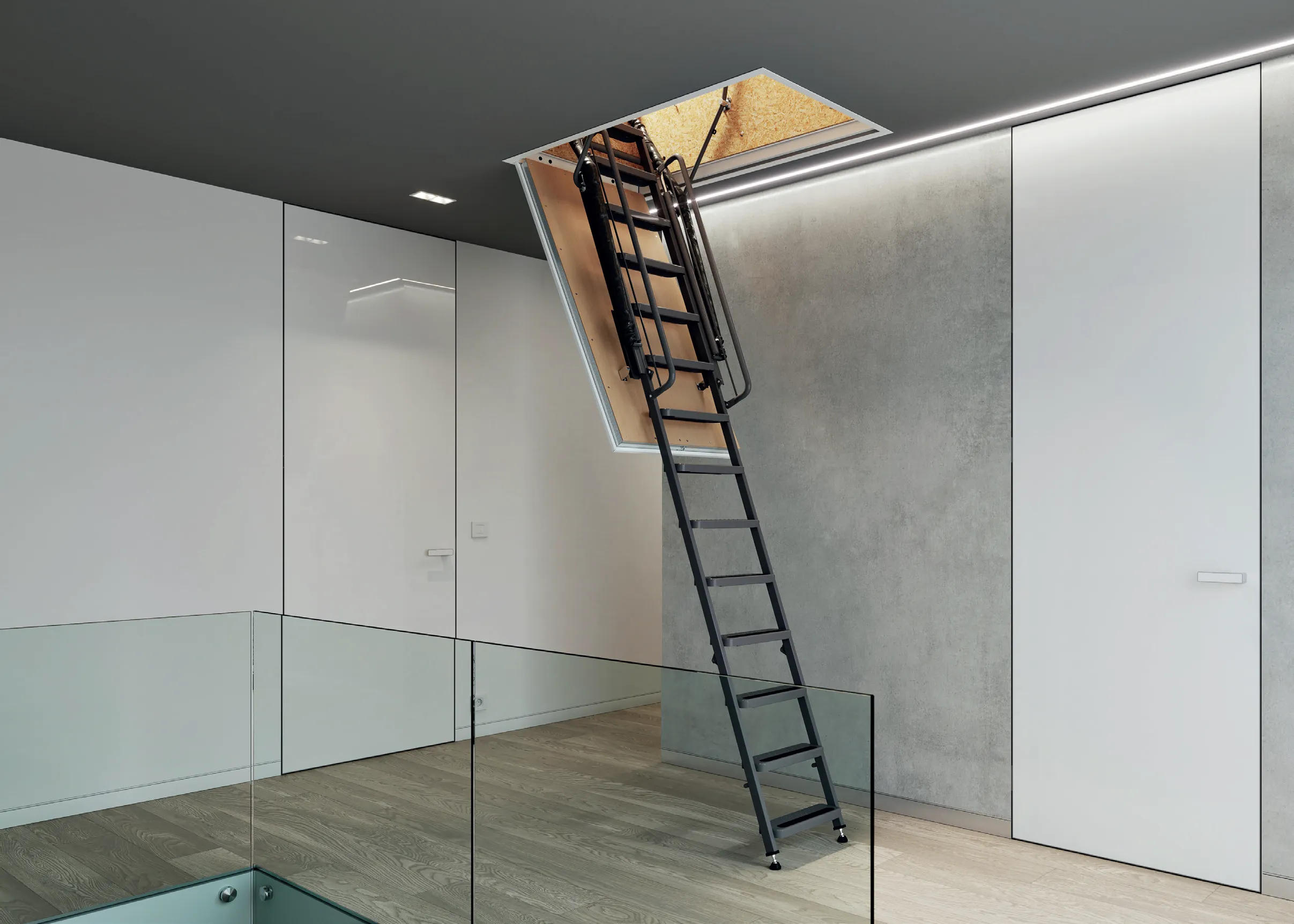 Газовый доводчик LXM облегчает управление лестницей и создаёт плавное открытие и закрытие механизма.