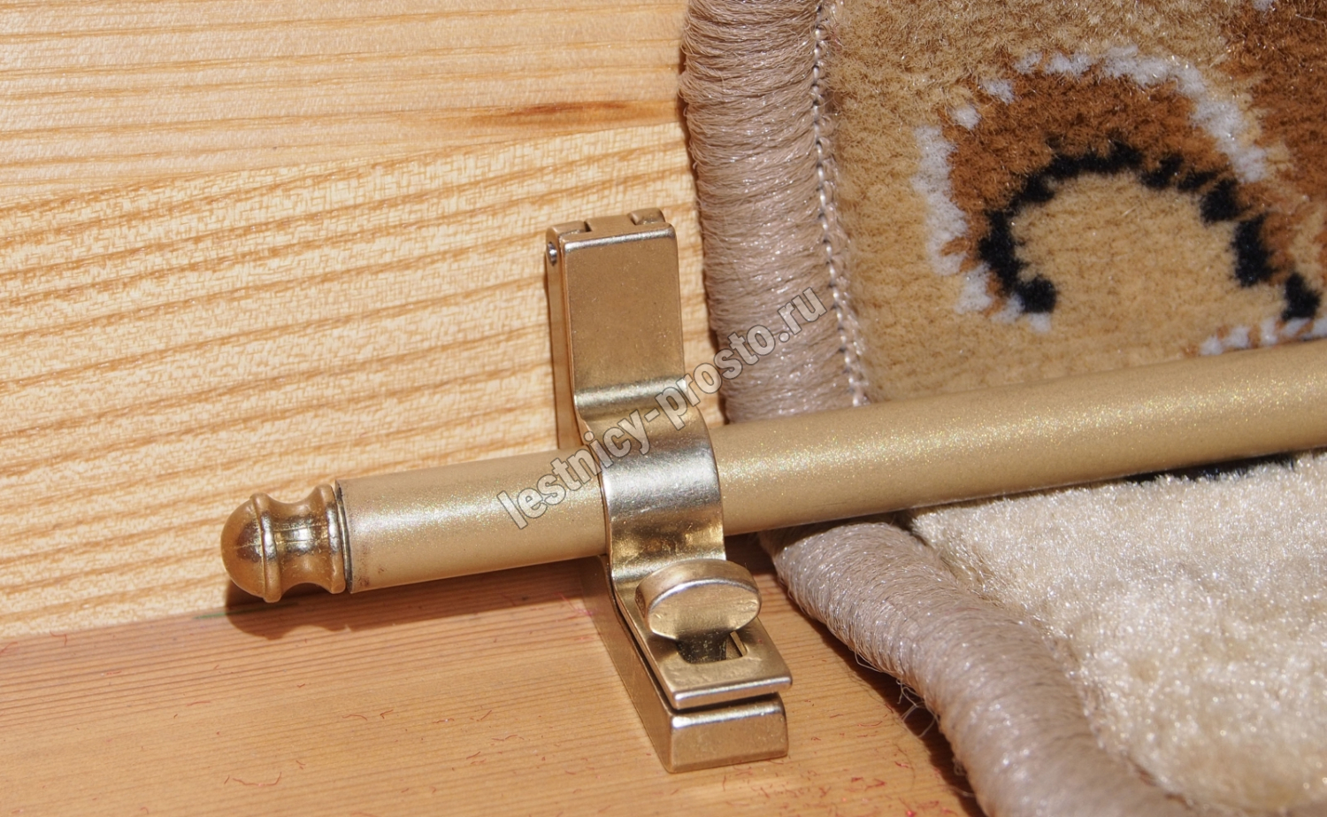Ковродержатель комплектуется двумя держателями и двумя заглушками из латуни, а также трубкой из металла, окрашенной порошковым способом в цвет "золото".