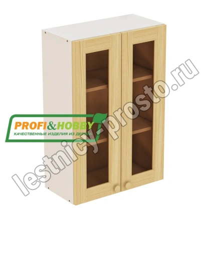 Шкаф навесной 2 двери 600х340х960 + фасад сосна под стекло бесцветный акриловый лак