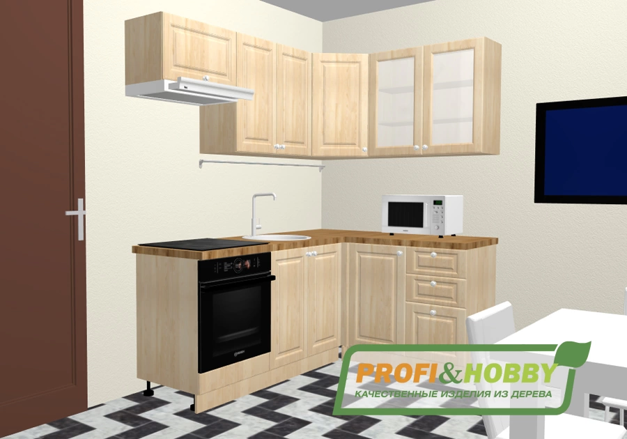 • Кухонные модули из сосны без тонировки (без отделки или прозрачный лак)