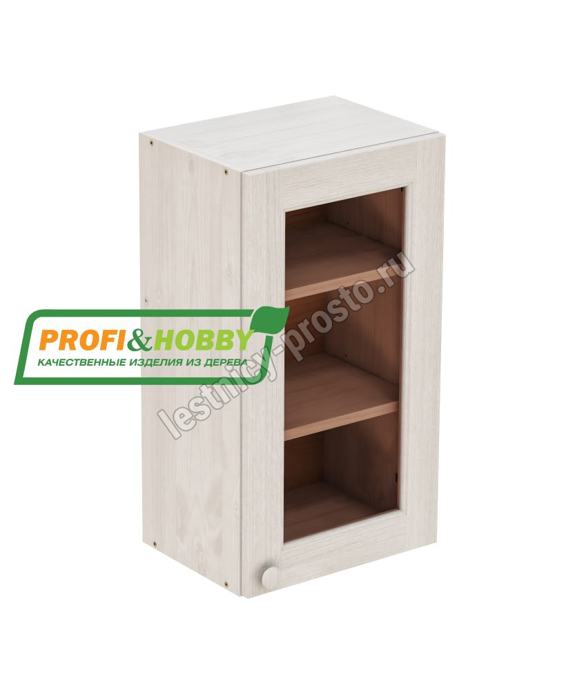 Шкаф навесной изготовлен из 100% массива дерева, без шпона и без МДФ/ДСП.