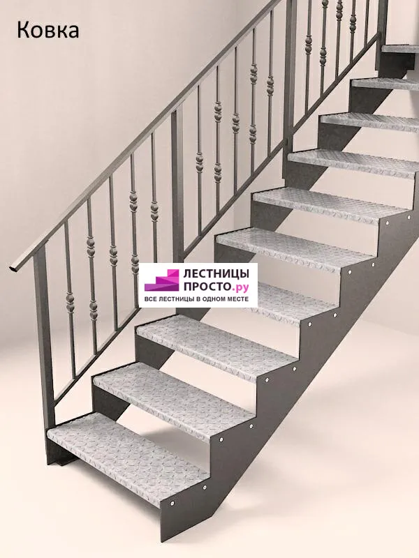 Покрытие порошковое, очень прочное и долговечное. Все детали каркаса крепятся с помощью болтов, благодаря чему Вы можете собрать каркас самостоятельно без применения сварки. В зависимости от ширины лестницы, каркас состоит из двух (ширина до 1 метра) или трех (ширина до 2 метров) опорных балок (тетив).