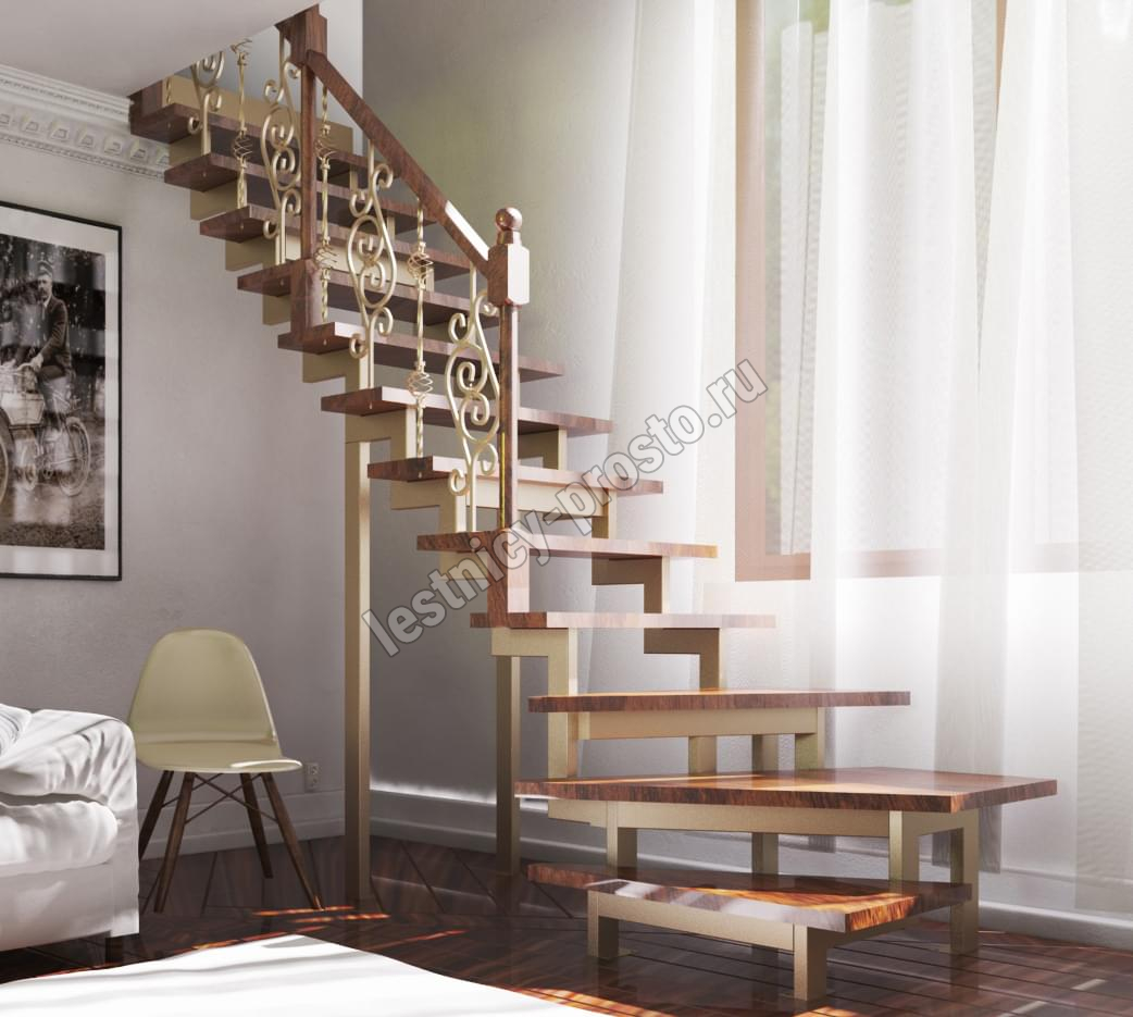 Лестница Prosto Due 40×80 г-образная, ступени бук