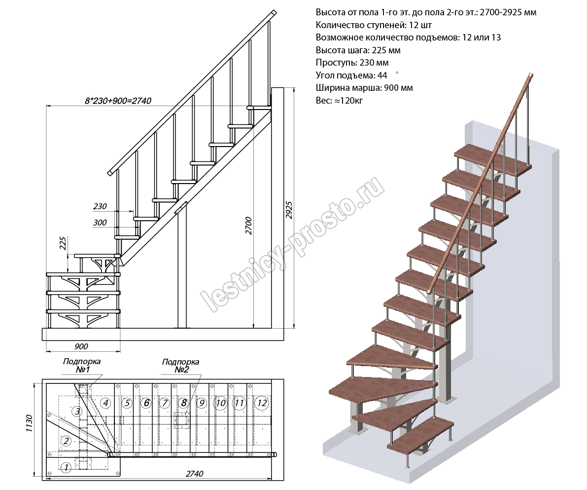 Высота лестницы 2700 - 2925 мм