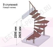 Высота лестницы 2025 - 2250 (9 ступеней) мм