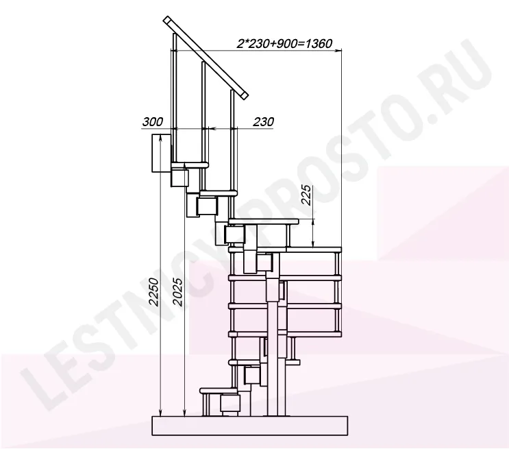 Высота лестницы 2025 - 2250 (9 ступеней) мм