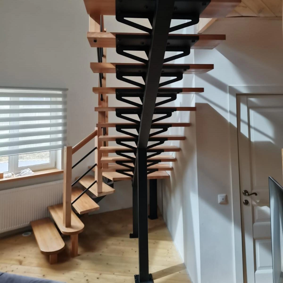 Каркас лестницы представляет собой набор модулей, которые комплектуются уже готовыми к монтажу.