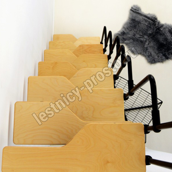 Ступени изготовлены из очень прочной покрытой лаком фанеры толщиной 30 мм.