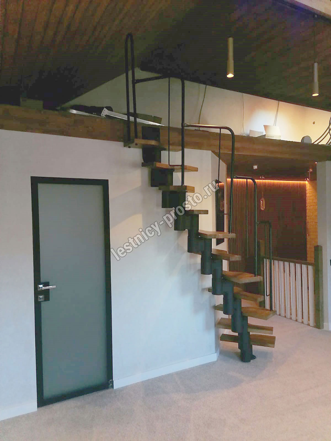 Лестница Prosto Urban Black гусиный шаг 700 мм, h198-288 см (11 ступеней), бук