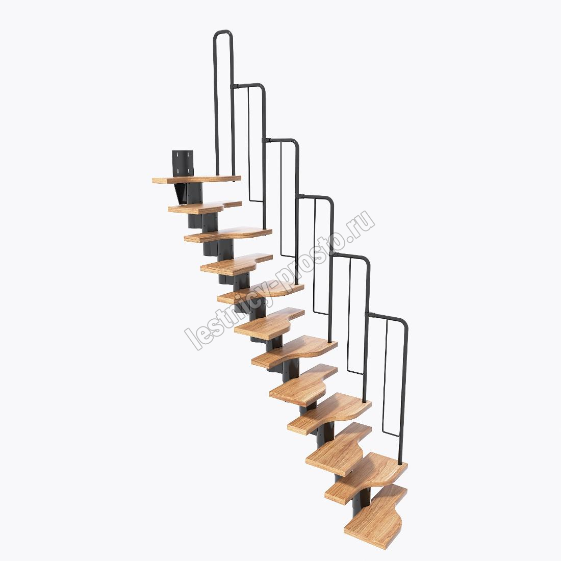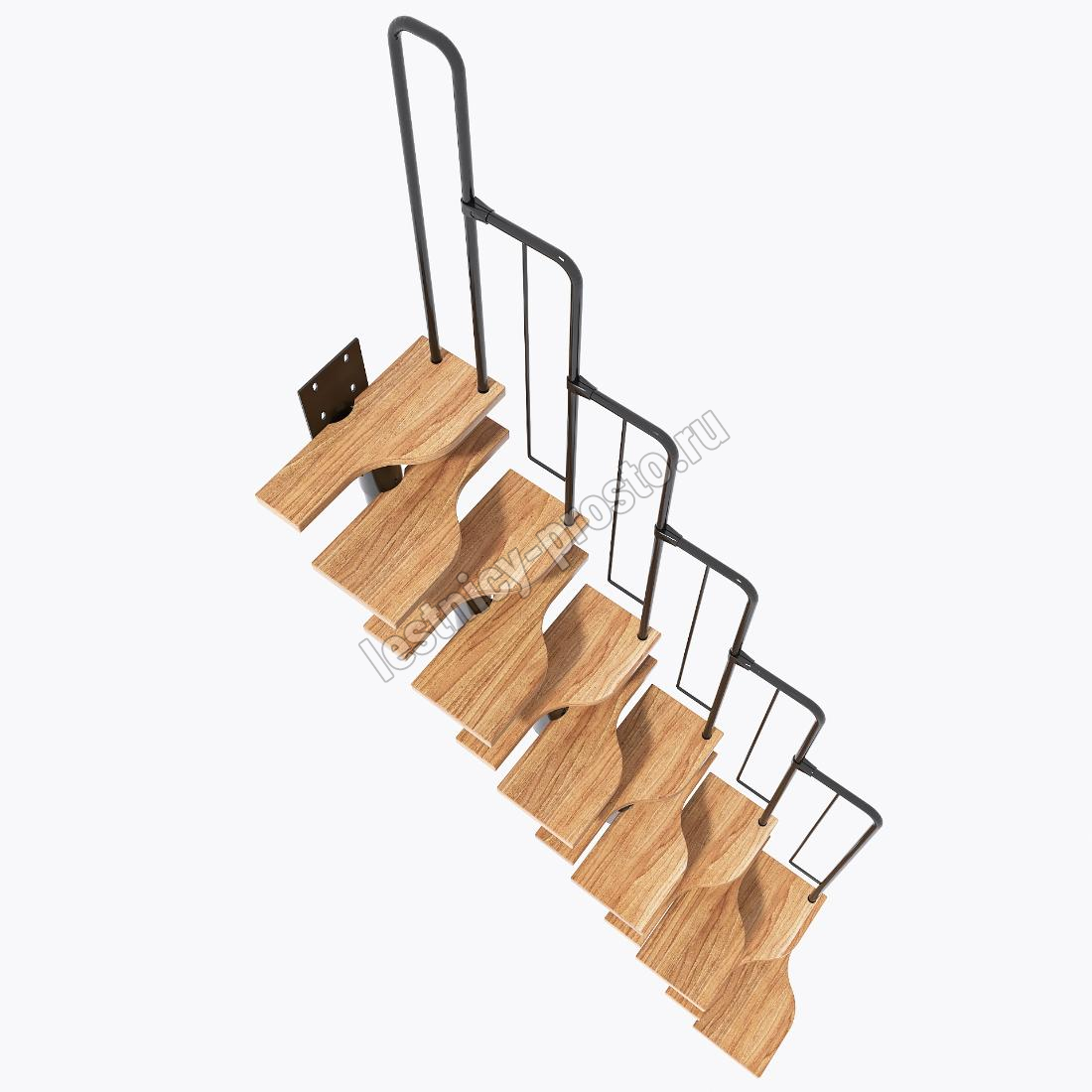 Лестница Prosto Urban Black гусиный шаг 700 мм, h198-288 см (11 ступеней), берёза мультиплекс