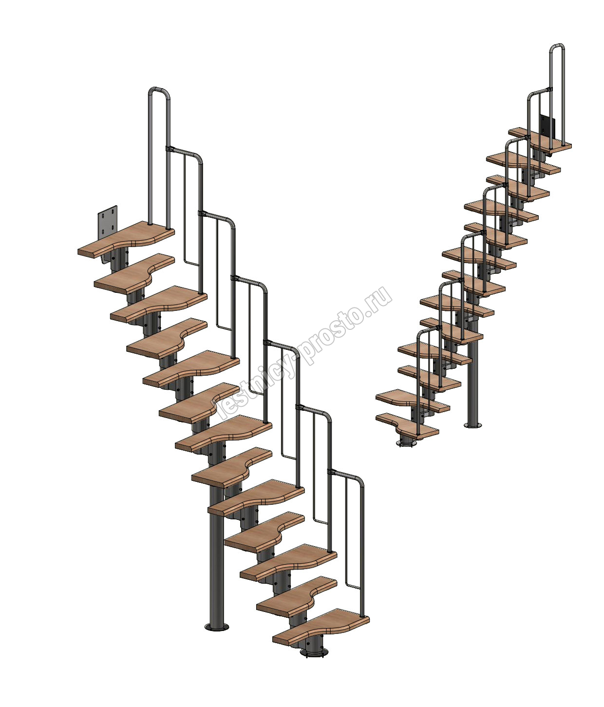 Лестница Prosto Urban Black гусиный шаг 700 мм, h234-336 см (13 ступеней), берёза мультиплекс