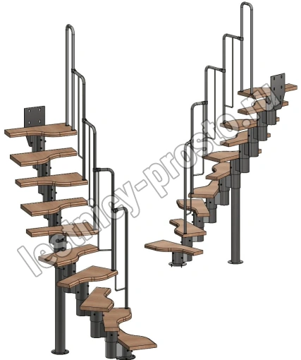 Лестница Prosto Urban Black гусиный шаг 600 мм, h180-264 см (10 ступеней), дуб