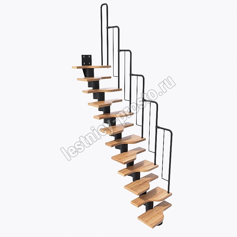 Лестница Prosto Urban Black гусиный шаг 600 мм, h234-336 см (13 ступеней), ясень