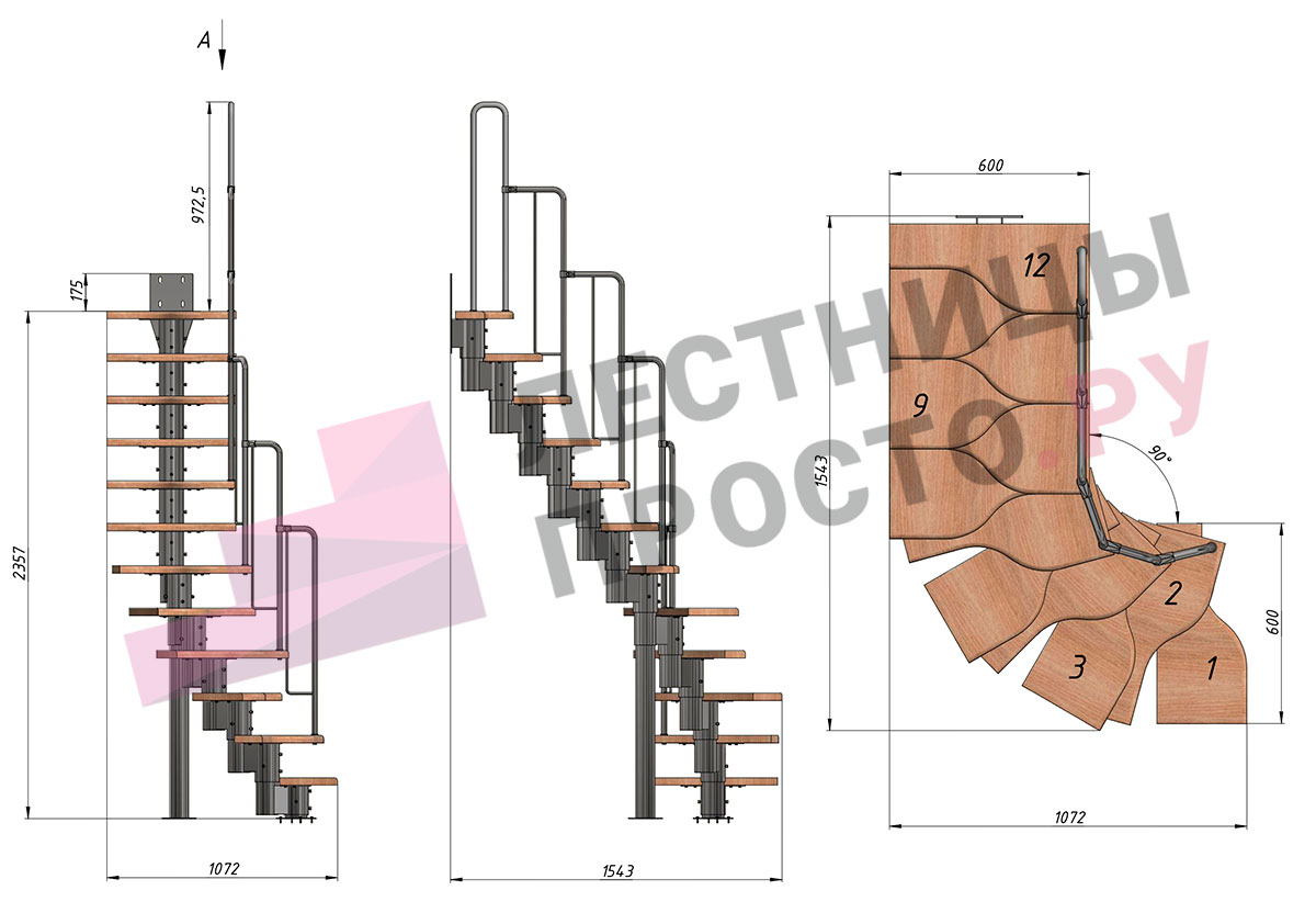 Лестница Prosto Urban Grey г-образная гусиный шаг 600 мм
