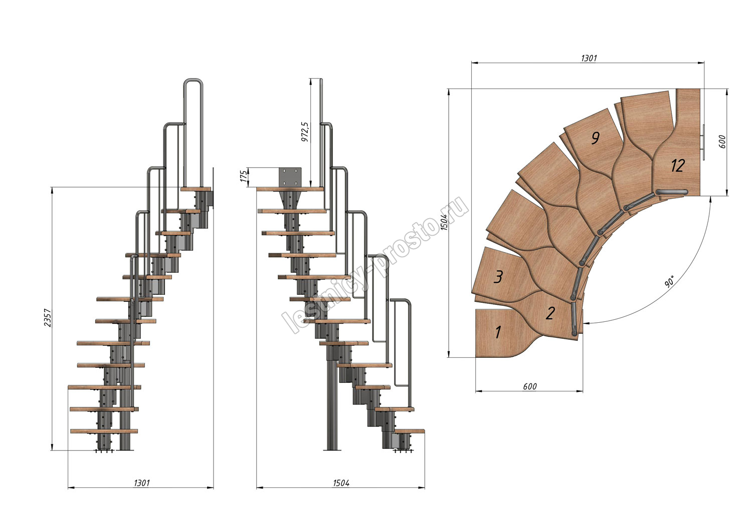 Высота лестницы 2160 - 3120 (12 ступеней) мм