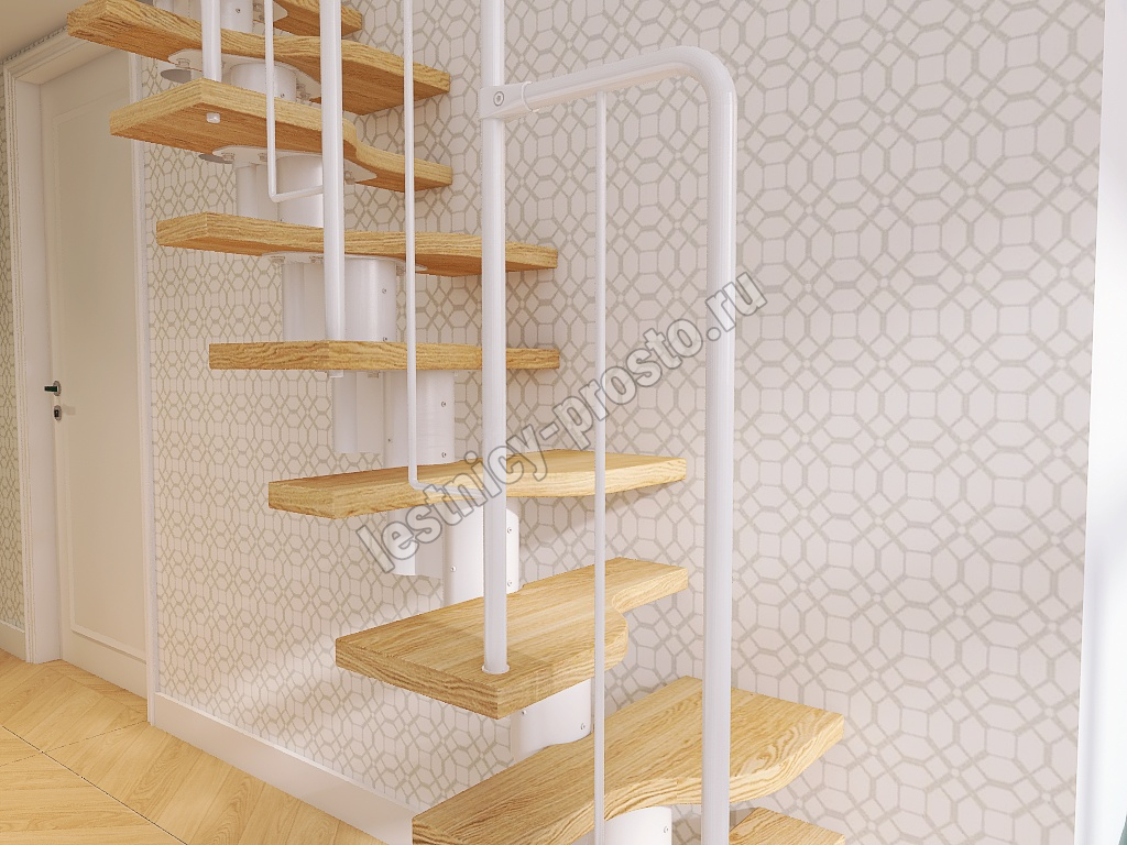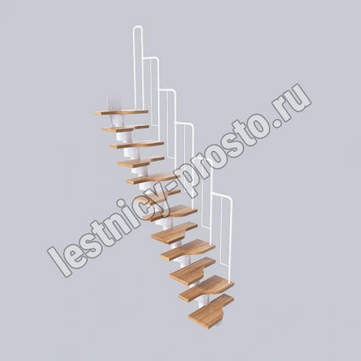 Лестница Prosto Urban White гусиный шаг 600 мм, h234-336 см (13 ступеней), берёза мультиплекс