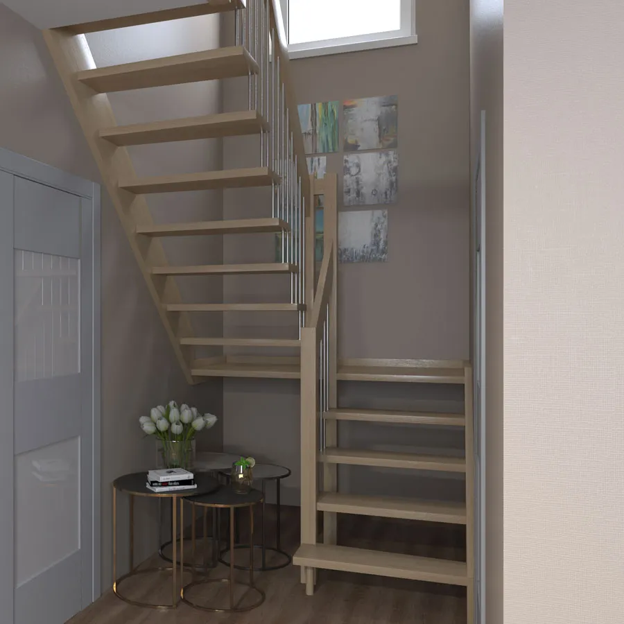 соответствует картинке, но вы не ограничены в его выборе. Лестницу можно приобрести и без ограждения, и с любым другим. Устанавливать на такую лестницу можно почти всё, начиная от классических деревянных балясин и заканчивая эксклюзивными коваными изделиями.