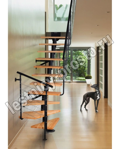 ATRIUM DIXI PLUS - это современная и удобная лестница, занимающая сравнительно мало места. В набор входят 11 конструктивных элементов и 11 ступеней из массивного лакированного дерева (8 прямых ступеней и 3 забежные ступени).