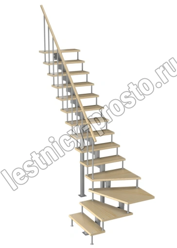 Модульная лестница Фаворит 225 3150-3290, Серый, Лиственница, Нержавеющая сталь