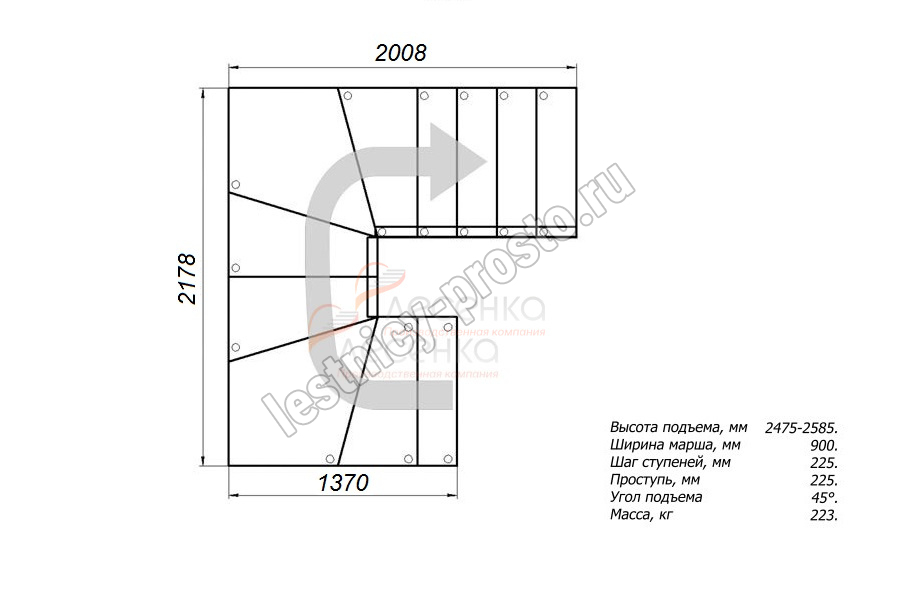 Модульная лестница Спринт 225 2475-2585, Серый, Лиственница, Крашеная