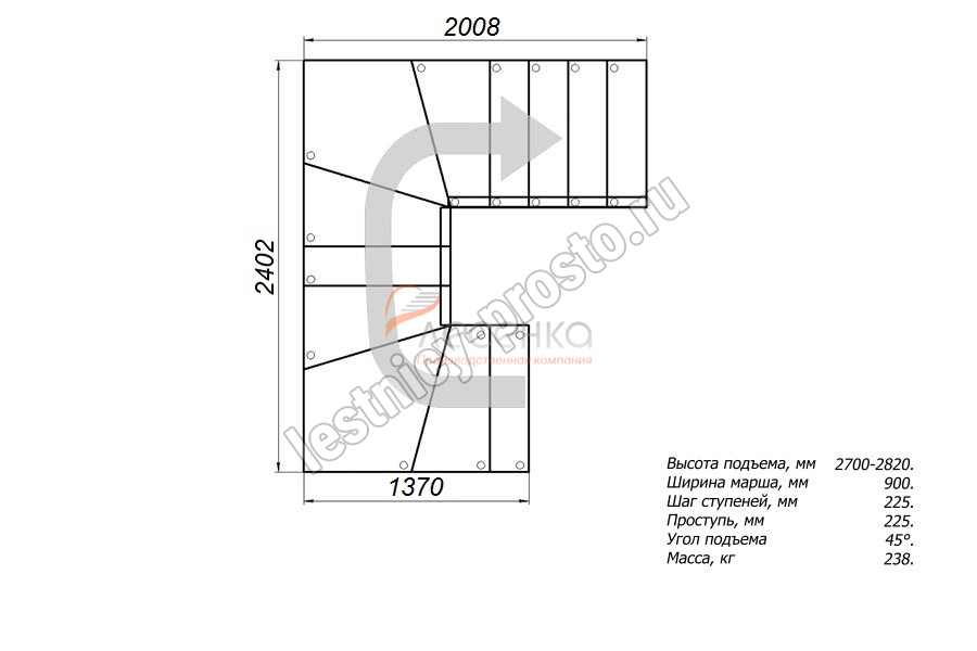 Высота лестницы 2700 - 2820 мм